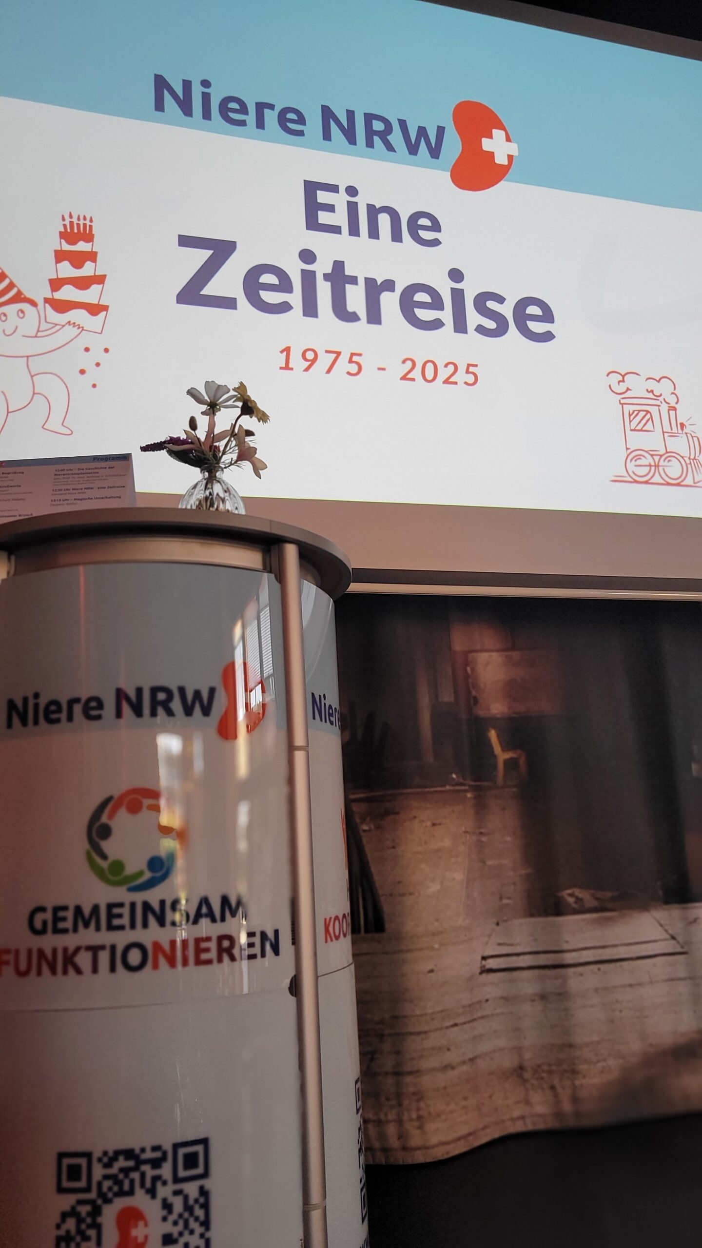 Einen besonderen Programmpunkt gestalteten die Vorstandsmitglieder der Niere NRW, die die Gäste auf unterhaltsame und persönliche Weise durch 50 Jahre Vereinsgeschichte führten. Mit Anekdoten, Erinnerungen und Einblicken wurde die Entwicklung der Niere NRW lebendig und greifbar – und zeigte, wie sehr Engagement, Gemeinschaft und Erfahrung den Verein bis heute prägen.